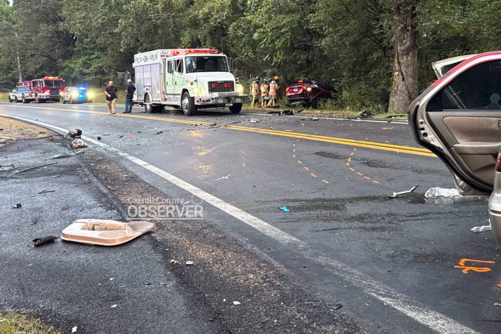 Car parts and debris scattered across U.S. Highway 70 Wednesday evening, September 24, as first responders extricated entrapped occupants from this week’s second head-on collision between Huntingdon and Jackson.