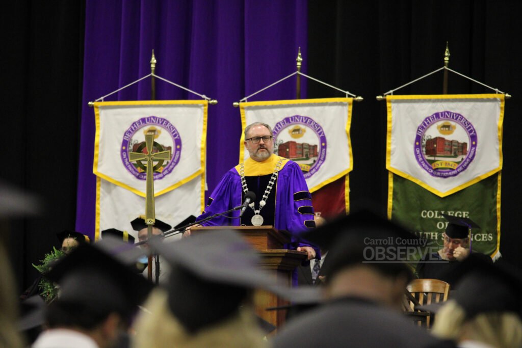 WELCOME – Bethel University President Dr. Perry Moulds welcomes graduates and guest. Jesse Joseph/Carroll Cuunty Observer