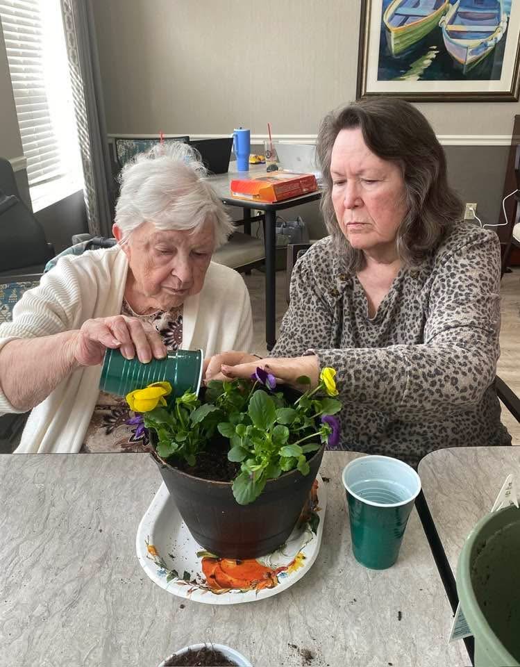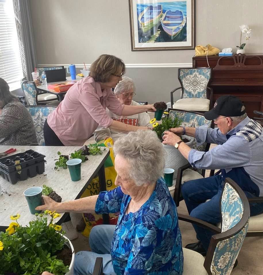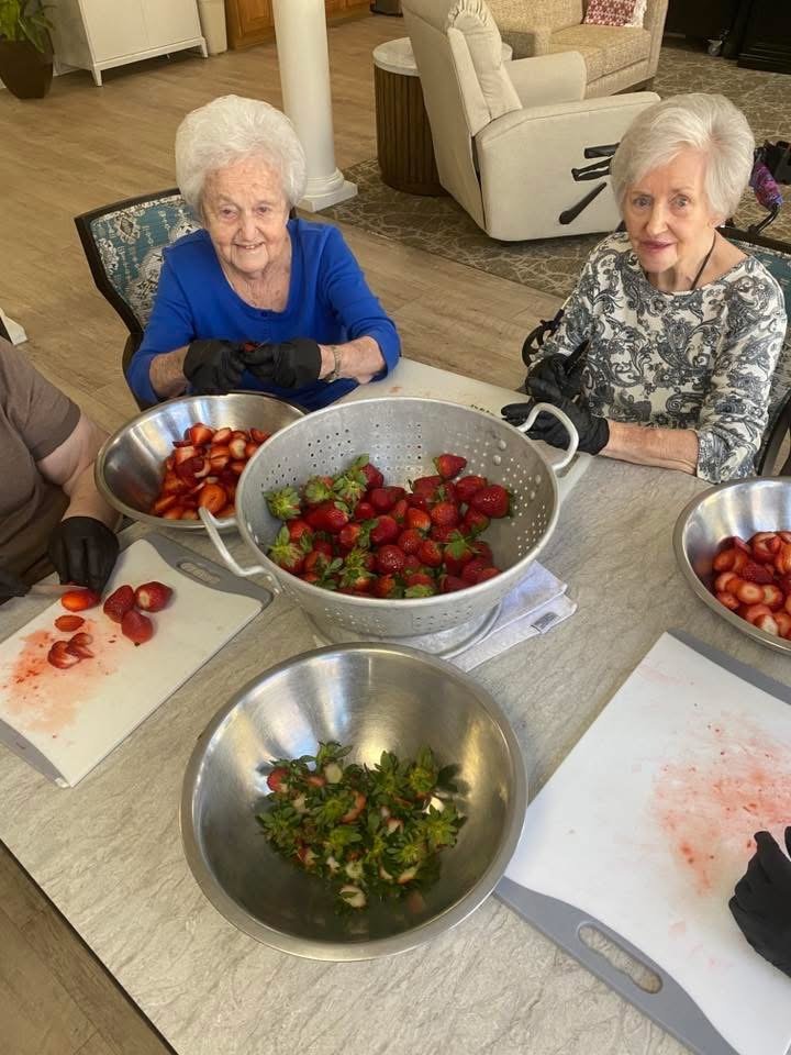 We kicked off the month by getting our hands dirty planting flowers in pots to brighten our front porch- welcoming spring in the best way possible. One of our favorite traditions continued as residents worked together to cap, slice, and freeze fresh strawberries. These delicious treats were later enjoyed during our popular Waffle Wednesday breakfasts and in homemade strawberry shortcake desserts.