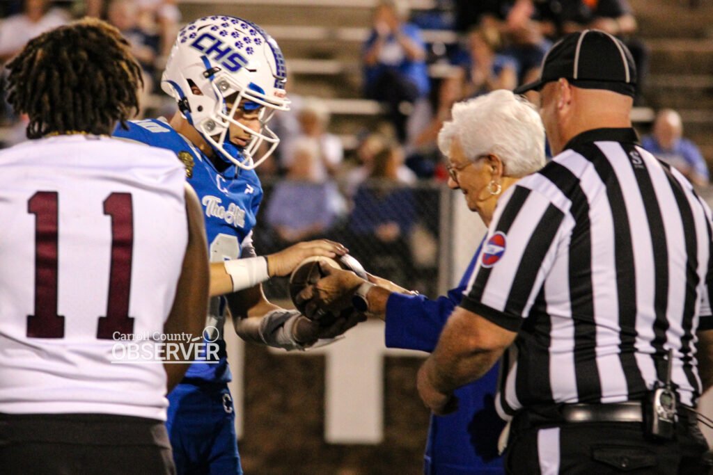During the coin toss, the school honored special guest, retired bus driver Patsy Higdon.