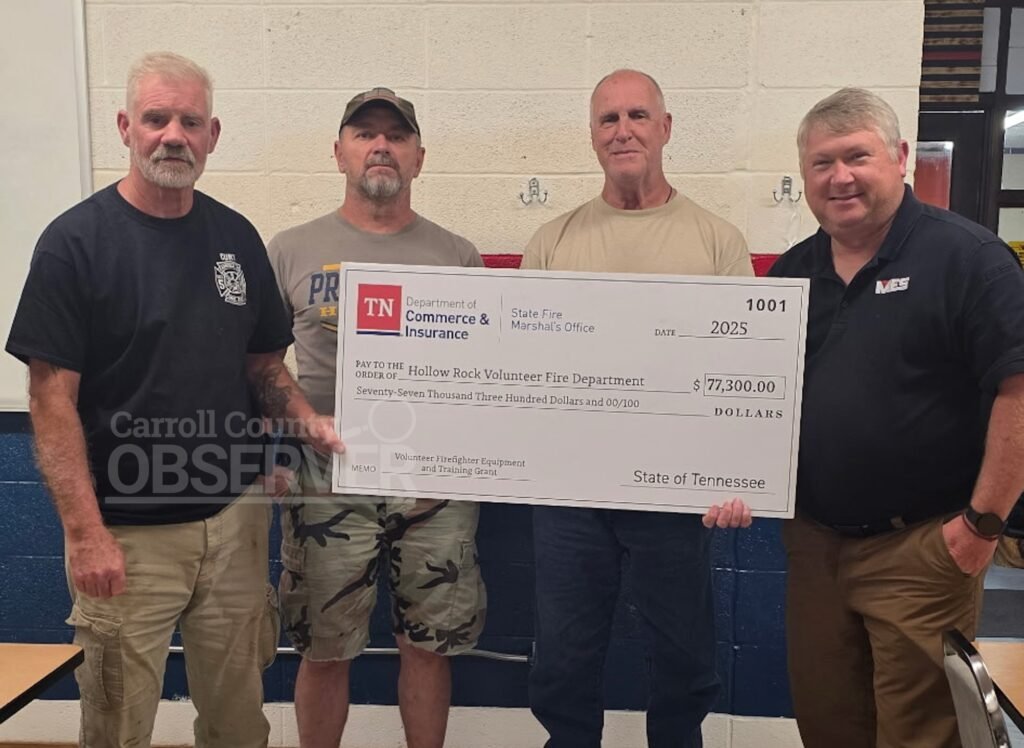 Hollow Rock Fire Department (HRFD) received a $77,300 Volunteer Firefighter Equipment and Training Grant from the Tennessee State Fire Marshal’s Office (SFMO), recently.