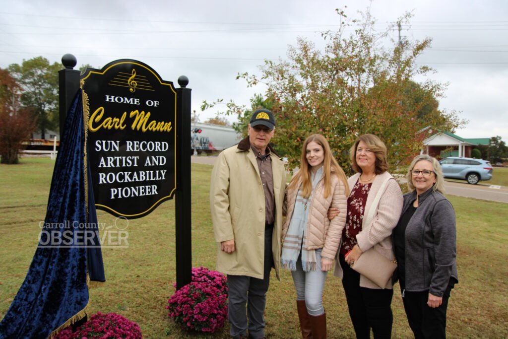 Dozens of friends and family to Huntingdon native and Rockabilly pioneer Carl Mann attended the unveiling of a new sign erected in his honor, Tuesday, October 28.