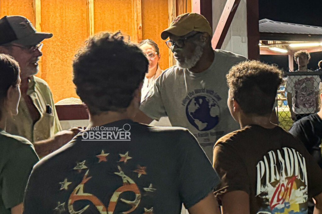 SUPPORTERS GATHER – Bernard Lykes speaks briefly with community members outside the stadium after being greeted by supporters. Jesse Joseph/Carroll County Observer