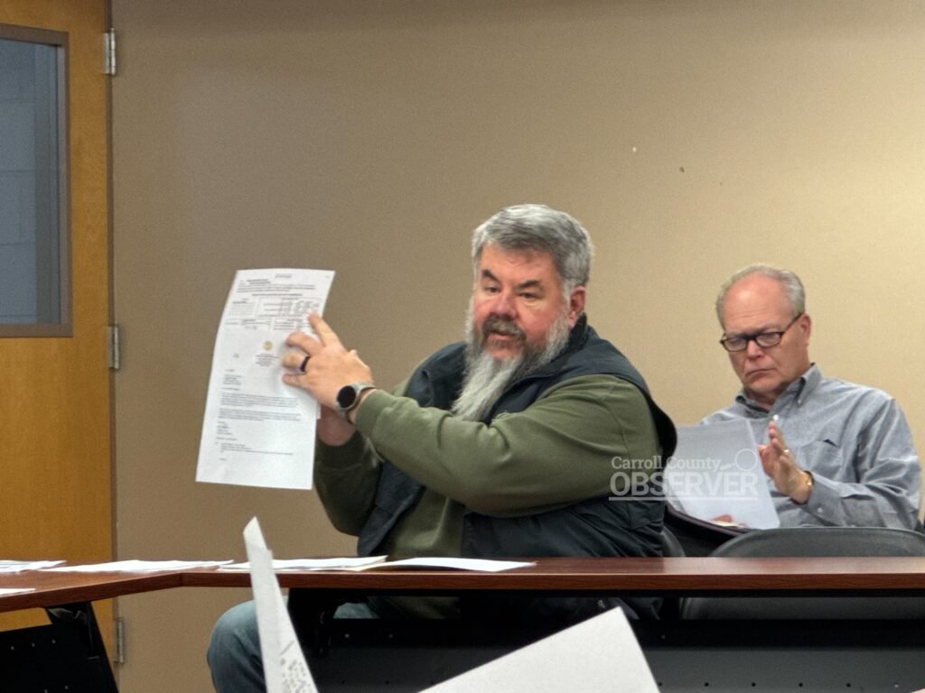 PROPOSAL – Sheriff Andy Dickson holds up a document explaining details of the retirement benefit. Jesse Joseph/Carroll County Observer