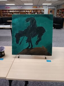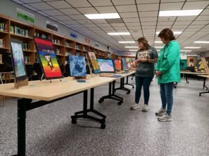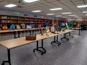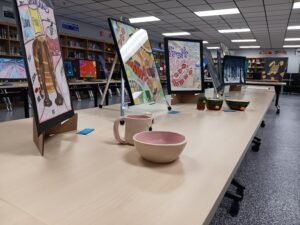 Featuring over two dozen student pieces, the library was transformed into an art gallery for the day.