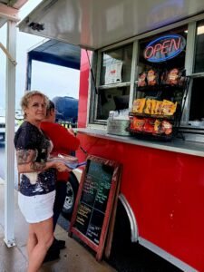 Michelle Azbill made sure to get a plate of Perry’s BBQ to enjoy while browsing each event.