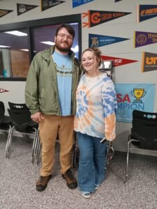 Jake Mayo, a teacher at WCJSHS, smiles brightly at Shelbi.