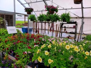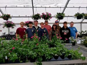 In partnership with Carroll Farmers Co-Op, several hanging baskets were available until they sold out, and the rest were purchased by The Farm Stand Plus in Bradford. Funds raised help cut out-of-pocket student costs by half and are also used for on-campus labs and activities. Several other plants will be available for sale in the greenhouse for a limited time.