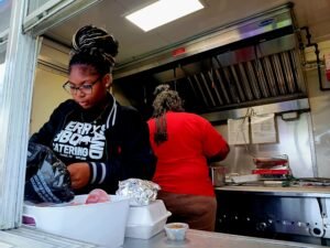 Hickory wood smoke left a delicious aroma from Perry’s BBQ and Catering throughout the school, encouraging everyone to grab a plate for lunch. They offered a special menu with different plates and offered their full menu as well.