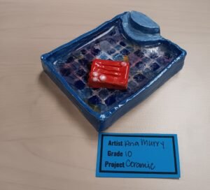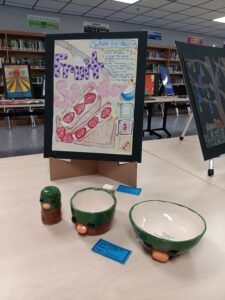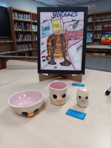 Students were allowed to choose what works were featured, with various paintings, sketches and other ceramics demonstrating their understanding of the themes and prompts given throughout their class time.
