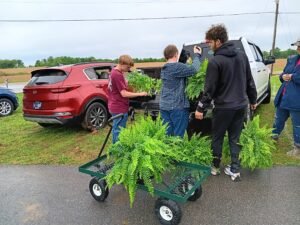 Preparation begins in September of the previous year, when students plant ferns and select flowering plants to grow. They also seed all their vegetable plants, such as tomatoes and bell peppers. Plugs are transported into their pots in February and finished in time to sell in April. Most of their flowering plants are purchased from Westel Greenhouse in Rockwood, TN.