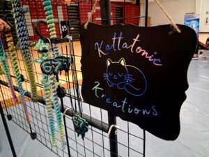 Kattatonic Kreations has attendees look at and ask about various prices and information about their prints.